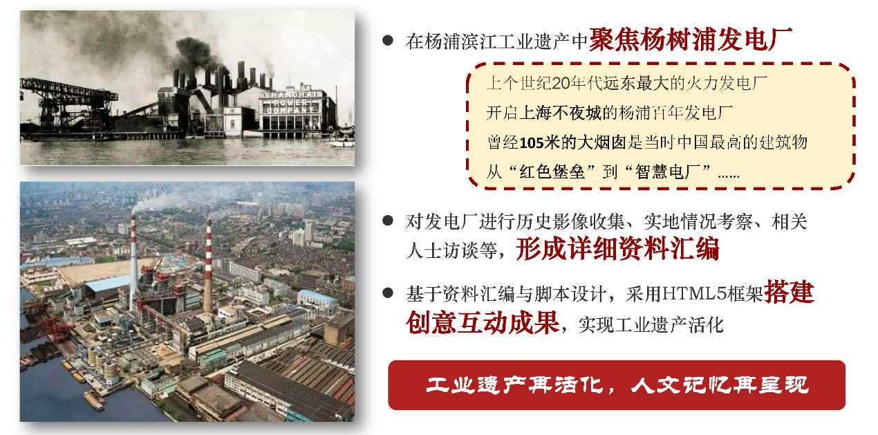 经过为期一年的项目实践,目前团队基本达成了项目期望目标,形成以杨树浦电厂为主题的资料汇编与H5文创动画两项成果。